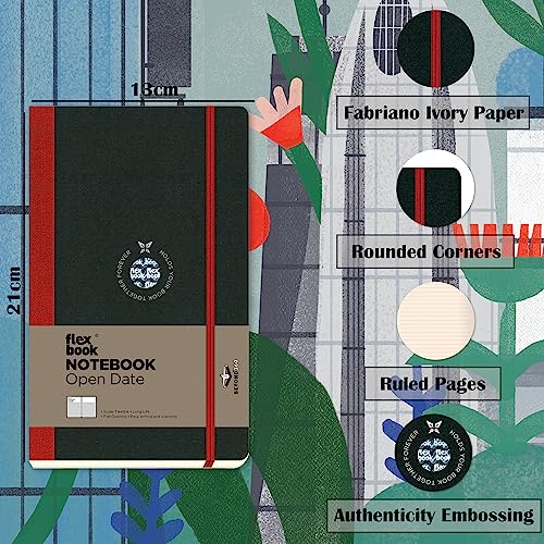 FlexBook Agenda perpetuo 192 pagine a righe 13 x 21 cm Couverture Noire/Dos Rouge