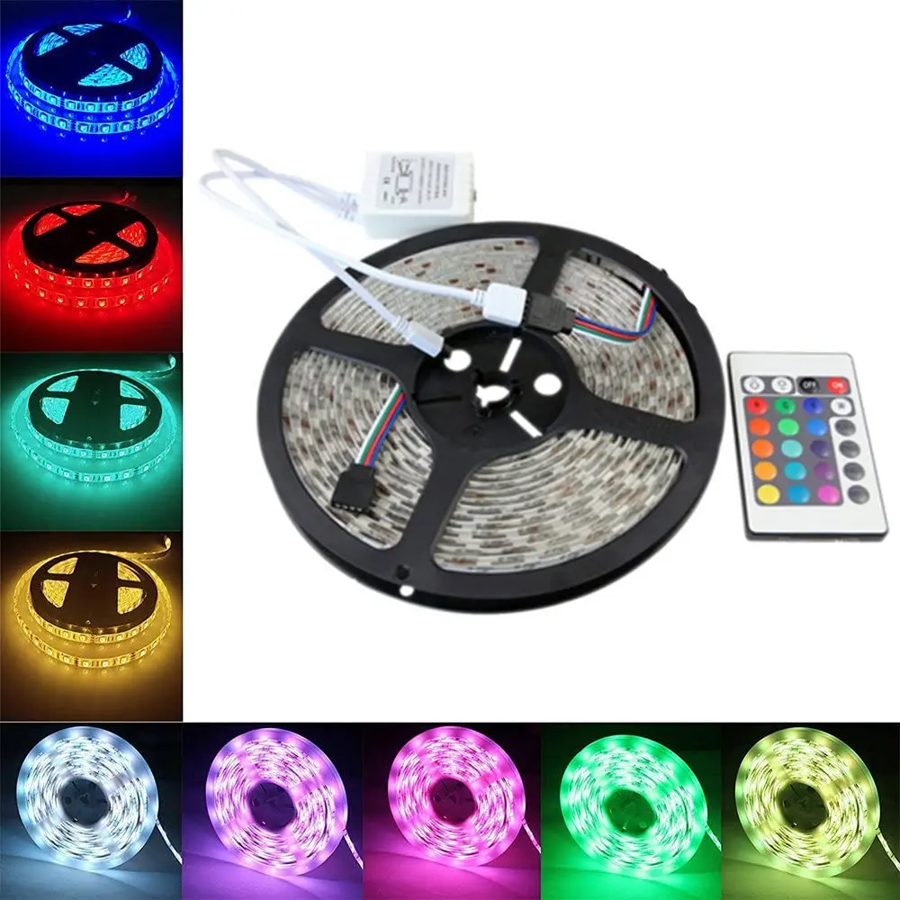 DC 12V 5M RGB Flexible LED Strip Lights 5050 300SMD with Remote Color Changing Full Kit with Mini Controller