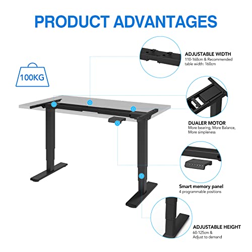 FLEXISPOT EC4 Scrivania Regolabile in Altezza con 2 Potenti Motori, 3 Livelli Telaio della Scrivania Standing Desk Scrivania Elettrica Scrivania Motorizzata con Tastiera Intelligente