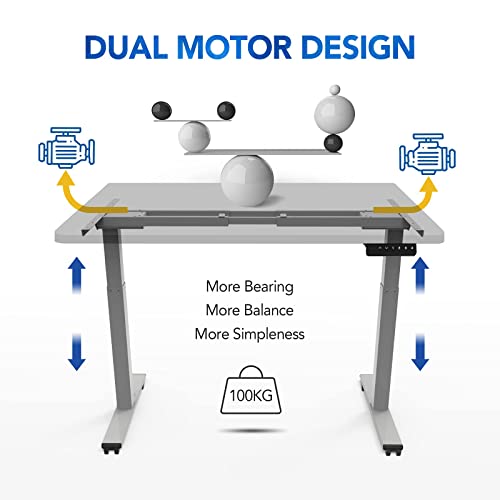 FLEXISPOT EB2S Scrivania Regolabile in Altezza Standing Desk Scrivania Elettrica Scrivania Motorizzata, con 2 Motori con Memoria Automatica Intelligente (Grigio+4 Ruote)