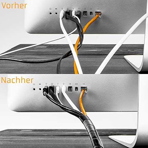 Flexowire cavo a spirale a spirale Tubo Cavo di 10 m con tubo flessibile buendel weite a Unire cavi ad esempio al computer, TV, Impianto Hi-Fi Nero 6-60 mm nero