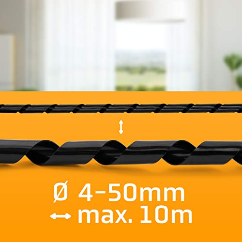 Flexowire cavo a spirale a spirale Tubo Cavo di 10 m con tubo flessibile buendel weite a Unire cavi ad esempio al computer, TV, Impianto Hi-Fi Nero 4-50 mm nero