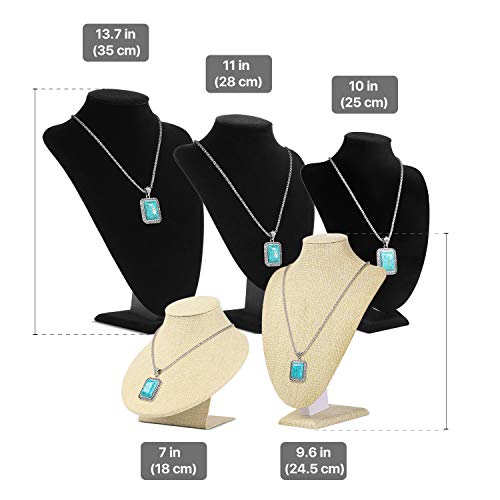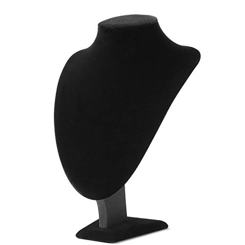 Flexzion Espositore Velluto Porta Gioielli Collana da Appendere Organizer Busto Portacollane Donna Organizzatore Supporto Collo Portagioie Pendenti per Catene Ciondoli Medaglioni da 28CM (Nero)