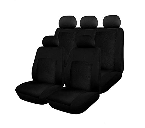 Flexzon Set Completo Di Copri Sedili Per Auto, 6 Pezzi, In Tessuto, Nero, Set Universale Per Auto,E Taxi