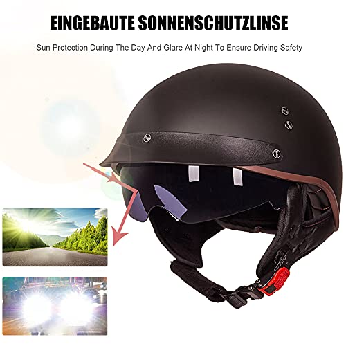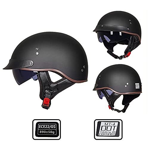FLHWAN Casco da Moto, Retro Mezzo Casco da Moto Harley DOT/ECE Moda Casco Unisex Jet Mezzo Casco Casco Aperto Casco Incrociatore Elicottero di Sicurezza Anticollisione