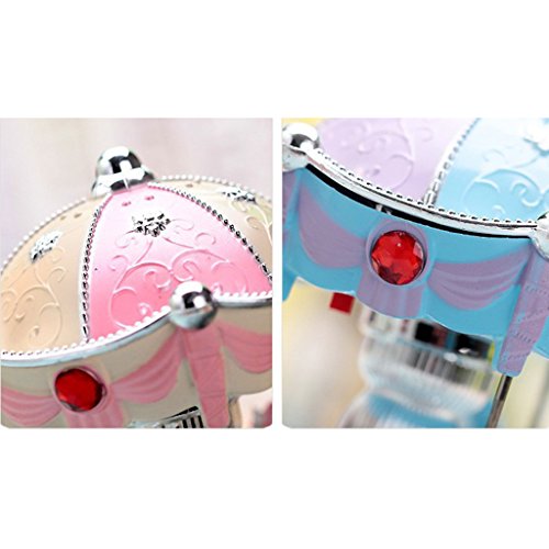 Flikool 3-Cavallo Giostra Carillon Giostra Scatola Musicale Merry-Go-Round Giocattolo con To Alice Melody Colorato Luce Notturna per Il Regalo di Natale del Regalo di Compleanno - Blu