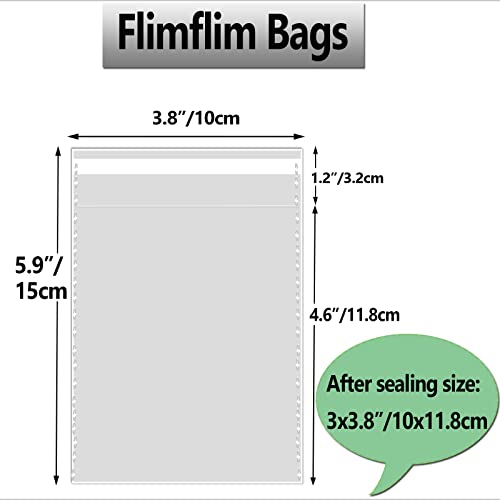 Flimflim Bustine Confetti Trasparenti Alimenti, Sacchetti Trasparenti Cellophane 10x11.8cm, con Chiusura Adesiva, Resistente allo Strappo 100pz