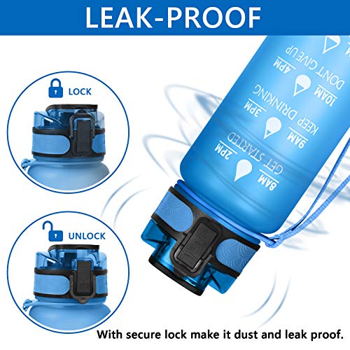 【SCALA DEL TEMPO DELL'ACQUA】 La scala del tempo dell'acqua dipinta con stile sulla bottiglia potrebbe aiutarti a regolare e sviluppare la tua abitudine al bere. Con la sua grande capacità da 32oz/1000ml (29,5x 7,5 cm), devi riempire la bottiglia solo due volte al giorno: una volta al mattino e una al pomeriggio, quindi hai abbastanza acqua per riempire per una giornata.