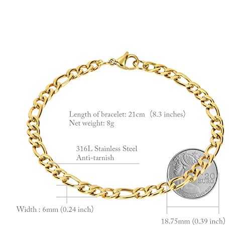 【Taglia unica】 Il bracciale in acciaio inossidabile è lungo 21 cm e largo 6 mm. Il braccialetto Figaro ha la lunghezza e la larghezza giuste per adattarsi ai polsi della maggior parte delle persone. Che si tratti di un abito o abbigliamento casual, abbigliamento hip-hop, abbigliamento sportivo o jeans, può essere un abbinamento perfetto, offrendoti uno stile quotidiano brillante