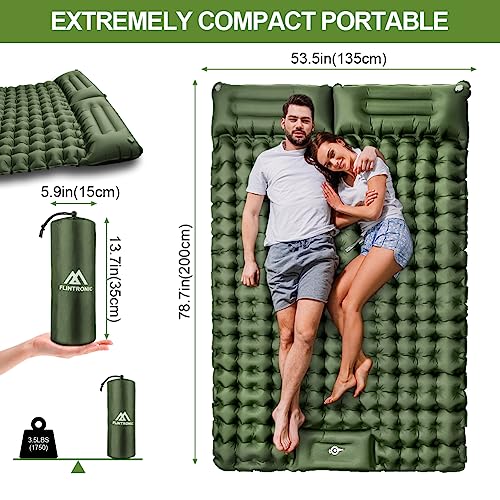 Flintronic Doppio Materassino Campeggio Autogonfiabile, 10cm Materassino da Campeggio Gonfiabile con Cuscino Leggero, Autogonfiante Materasso Portatile Impermeabile per Campeggio, Tenda,Escursionismo