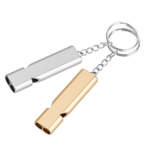 Flintronic Fischietto Emergenza, 2Pezzi Dorato d'Argento Fischietto Forte Fischietto in Metallo Sopravvivenza Fischietti Emergenza per Caccia Escursionismo Canottaggio All'aperto Campeggio Sport