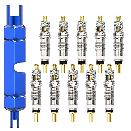 ♀️ ♂️ 【Ampia applicazione】: il nostro set di nuclei per valvole per bici è adatto per strumenti Schrader / Presta / Presta Extender / valvola per pneumatici a camera d'aria, come biciclette, motociclette, automobili. Inoltre, il kit contiene 1 strumento di smontaggio valvola, 10 nuclei valvola Presta, che possono soddisfare le tue esigenze quotidiane, non devi preoccuparti della scelta degli strumenti.