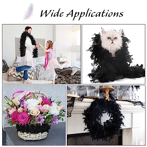 Flintronic Boa di Piume, 2 M Boa di Piume Colorate con Occhiali da Sole, Piuma Sciarpa, Decorazione di Boa di Piume di Tacchino per Charleston, Flapper, Carnevale, Halloween, Nero