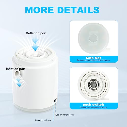 ⚡⚡【ALIMENTAZIONE DUREVOLE E RICARICA USB】 La pompa ad aria elettrica ha una batteria al litio ricaricabile integrata da 1360 mAh, che può fornire tempi di lavoro più lunghi. La pompa ad aria può essere caricata rapidamente all'aperto con un power bank, un laptop, una porta USB per auto o direttamente a casa con un caricabatterie per cellulare, rendendo il tuo viaggio più comodo.
