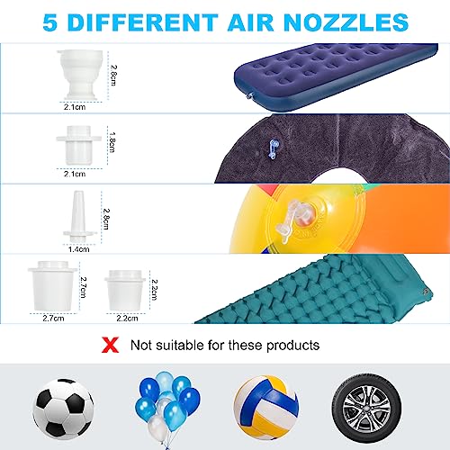【AMPIO UTILIZZO】 La pompa dell'aria è dotata di 5 ugelli di diverse dimensioni, può adattarsi alla maggior parte dei dispositivi gonfiabili necessari per gonfiare o sgonfiare. Come pompe a c