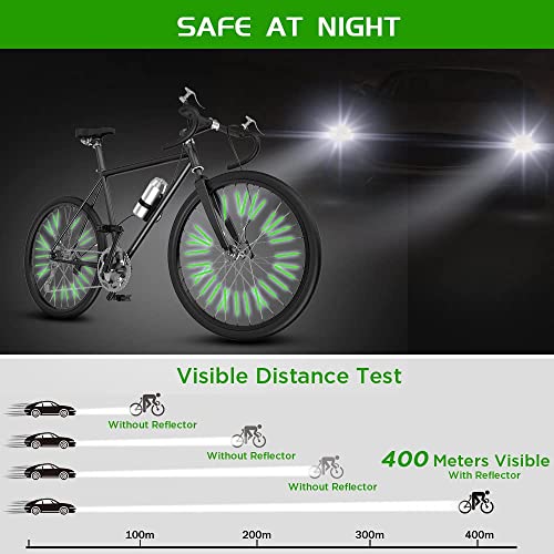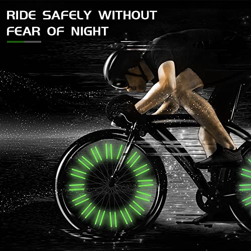 ✨✨ 【ALTA VISIBILITÀ】 I nostri riflettori per raggi di bicicletta possono riflettere la luce in condizioni di scarsa illuminazione e possono essere chiaramente visibili anche a una distanza di 400 metri. I tubi riflettenti delle ruote della bicicletta forniscono una riflessione a 360 ° e migliorano la visibilità laterale, garantendo una guida sicura al buio e in caso di maltempo. I riflettori stessi non possono riflettere la luce e richiedono un'illuminazione esterna.