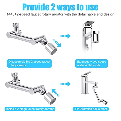 Flintronic Rubinetto Rotante 1440 Gradi, Aeratore per Attacco Rubinetto con Filtro Antispruzzo, Prolunga Rubinetto Bagno in 2 Modalità per Filettatura Esterna 24mm,FM 22mm per Cucina Lavandino
