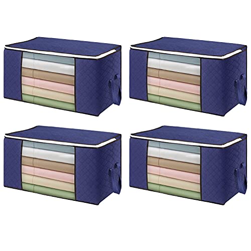 Flintronic Scatole per Armadio Salvaspazio, 4PCS Custodia per Trapunte e Coperte, Porta Abiti Grande capacità con Manico Rinforzato, Organizzatore Pieghevole Traspirante con Cerniera in Inossidabile