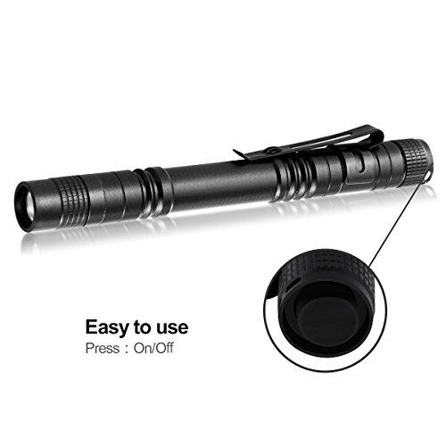 【FACILE DA USARE】: la torcia è molto comoda da tenere e il pulsante viene premuto molto comodamente con il pollice. Questa torcia è compatibile con 2 batterie AAA. Non ho batterie con questa torcia. (Non include le batterie).