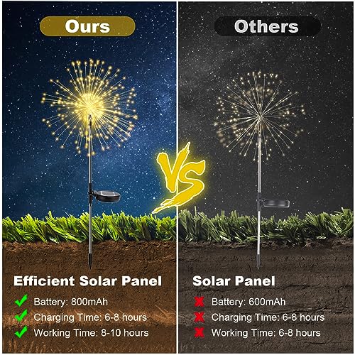 ✨【TEMPO DI LAVORO LUNGO】 La luce solare per fuochi d'artificio è incorporata in una batteria ricaricabile da 1,2 V/800 mAh che elimina il controllo della presa. 6-8 ore di ricarica durante il giorno possono fornire 8-10 ore di lavoro durante la notte.