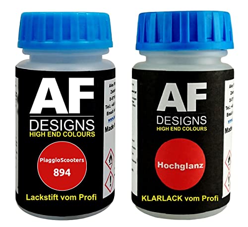 Alex Flittner Designs Pennarello per vernice per scooter PiaggioScooters 894 rosso Dragon + vernice trasparente da 50 ml per moto