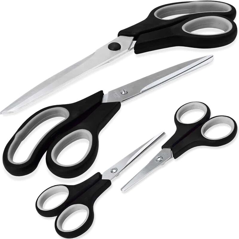 Sono arrivate le tue nuove forbici! Hai sempre le forbici giuste a portata di mano con questo set di forbici da 4 pezzi. Perfetto per il fai da te, per la cucina, la scuola o l'ufficio. Il set è composto da una forbice da sarto (25 cm), una forbice da cucina (21 cm), una forbice per tessuti (14 cm) e una forbice da bricolage (12 cm). Le cesoie sono dotate ciascuna di una vite regolabile e di impugnature ergonomiche antiscivolo con inserti morbidi, che garantiscono un elevato comfort durante l'uso. Le lame in acciaio inossidabile garantiscono un taglio facile di carta, plastica, foto, cartone, pelle, tessuti e molto altro. Inoltre le cesoie sono adatte sia per destrimani che per mancini. Vantaggi del prodotto - set di forbici affilate come rasoi per il massimo comfort di taglio - adatto per destrimani e mancini - con vite regolabile - manici ergonomici antiscivolo con inserto morbido - universale per ufficio, cucina, casa o fai da te - montaggio semplice di carta, plastica, foto