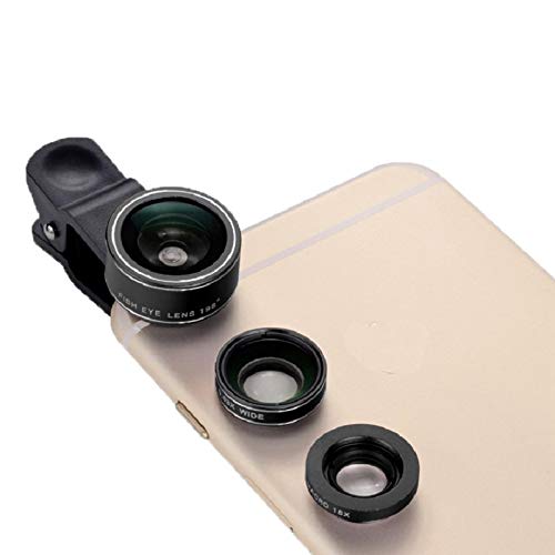 Fliyeong - Obiettivo 3 in 1 a clip per smartphone, obiettivo Fisheye, per la maggior parte degli smartphone, colore: Nero