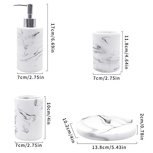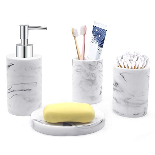 Floatant - Set di accessori da bagno, 5 pezzi, in resina bianca, stile marmo, per sapone e lozione, portaspazzolino e 2 bicchieri portasapone