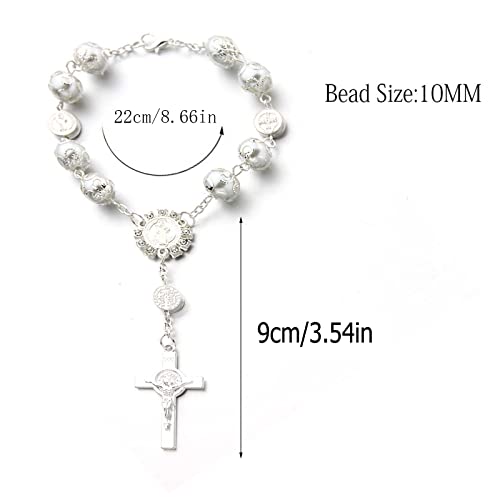 Floatdream Bracciale Croce Cattolica, Bracciale Croce Cattolica Regolabile, Braccialetto di Perle Cattoliche, per Compleanni, Cresime, Comunioni, Battesimi, Feste(Bianco)