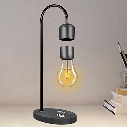 Floatidea Magnetic Levitating Light Bulb Black Floating Levitation Lamp Table LED Night Light Bedroom Decor Desk Toys Office Gift Home Decoration with Phone Wireless Charger