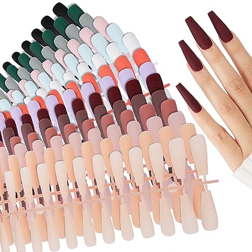 FLOFIA 336pz Unghie Finte Tinta Unita Lunghe Colorate Ballerina Unghie Artificiali in Espositore Display Nail Tips Unghie Finte Tinta Unita Decorazione Nail Art Fai da Te (14 Set)