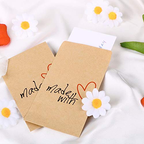 ▶DIMENSIONE: Le mini buste misurano circa 7,2 x 11cm, la guarnizione è di circa 1,5 cm. Il diametro degli adesivi made with love è di circa 3,5cm. Gli adesivi chiudipacco e i sacchetti di carta kraft sono una combinazione perfetta.