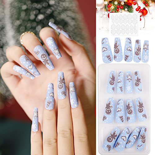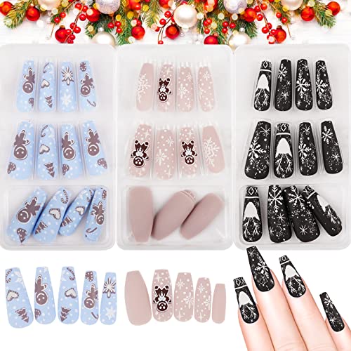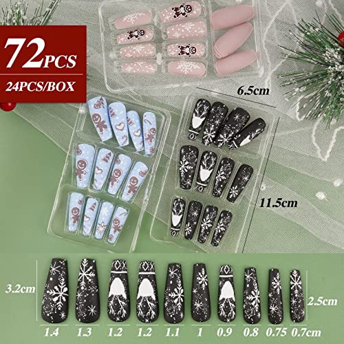 FLOFIA 72pz Unghie Finte Natale Colorate Adesive Lunghe Ballerina Unghie Artificiali Adesive Natalizie Unghie Finte Compertura Completa Natale per Manicure Decorazione Nail Art Fai da Te (3 Scatole)