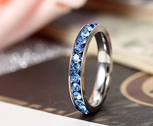 Flongo Anelli da Donna 4mm Banda con Blu Zircone Bling Stile in Acciaio Argento Blu