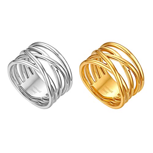 Flongo Anello da Donna Promessa in Acciaio Inossidabile Colore Argento Oro Regalo