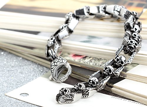 Flongo Bracciale Braccialetto Uomo Gotico Acciaio Cranio Catena