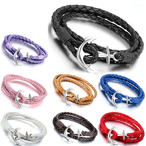 Flongo Bracciale Braccialetto Retro Tessere da Mano Multi Strati Ancora Decorato in Pelle Leather