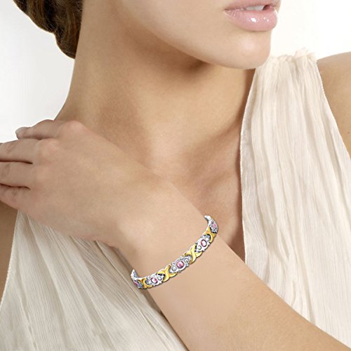 Flongo Bracciale in Oro per Donna Elegante, Braccialetto in Acciaio Inossidabile, Braccialetto Rosa Romantico con Terapia dei Magneti Buon Regalo per Natale/Matrimonio