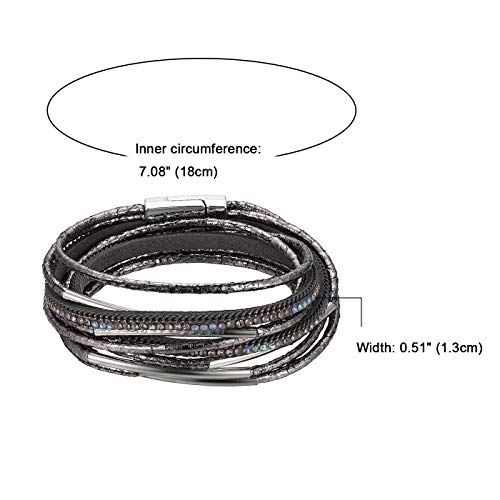 Flongo Bracciale da Donna Multifili, Bracciale Magnetico, Bracciale Rigido in Pelle, Colore Nero Argento