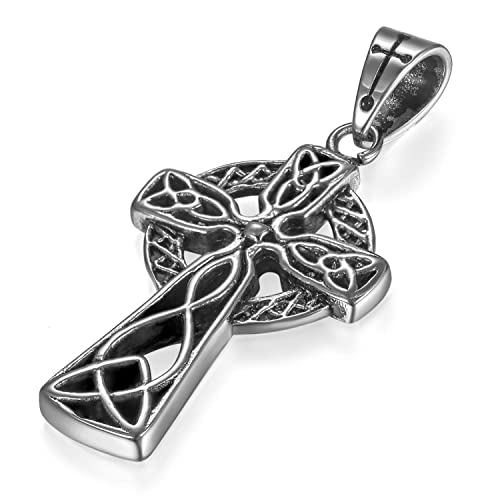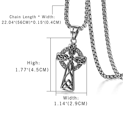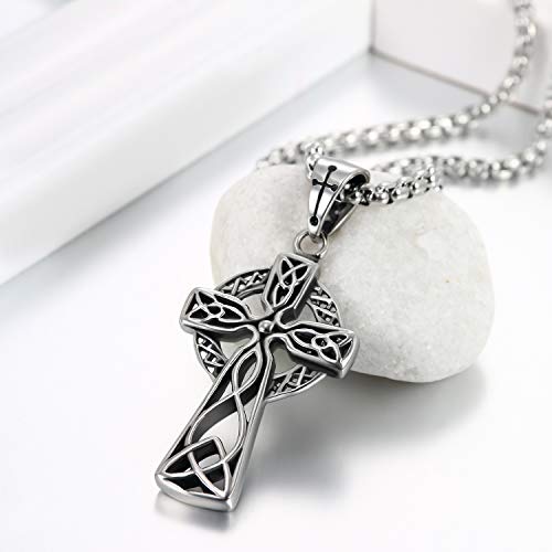 Flongo Collana celtica per Uomo, Collana con Pendente a Croce celtica Acero inoxidable Plateado Collar vikingo Vikings Cadena 56cm, Regalo di Natale San Valentino