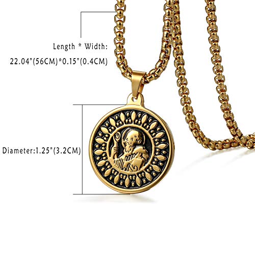 Flongo Collana con Ciondolo in Oro per Uomo, Collana Religiosa in Acciaio Inossidabile, Ciondolo di Lord Christ Croce Vintage Retro, Regalo di Natale
