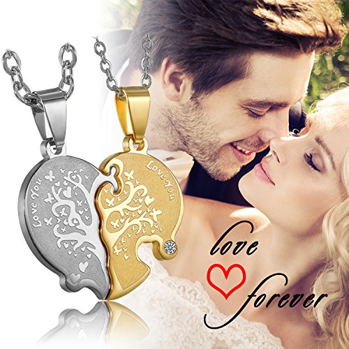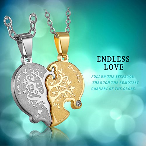 Flongo Collana Coppia Fidanzati Puzzle Ciondolo Albero della Vita con Zircone Love You Collana Amicizia