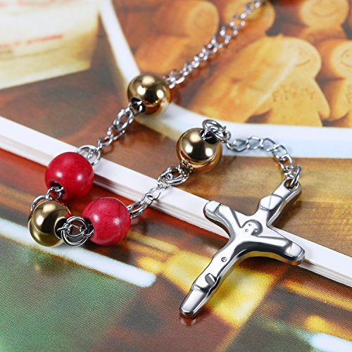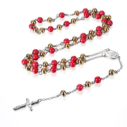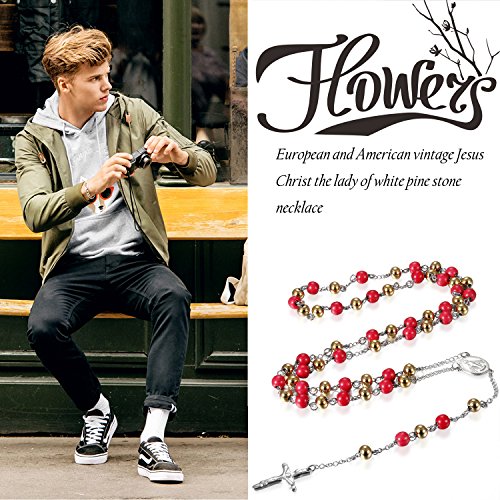 Flongo Collana Perline Rosario,Collana Croe Preghiera Crocifisso,Collana Religiosa in Acciaio Inossidabile Crocifisso del Signore Gesu' Cristo,Regalo Natale