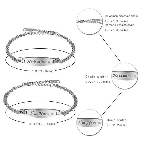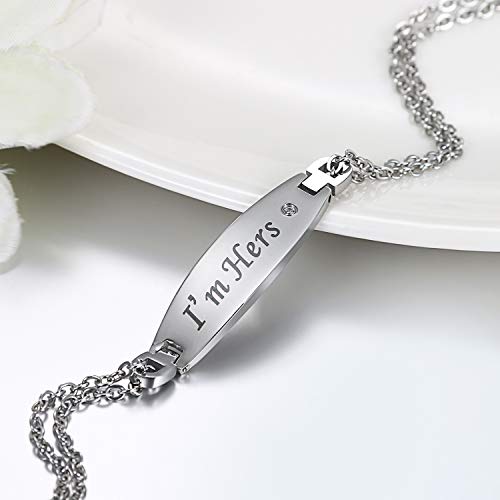Flongo Coppia Bracciali Braccialetto Lui & Lei, He is mine & I'm hers" Acciaio inox bracciali d'amore, Colore Argento Con Zirconi, Regalo per San Valentino/Natale, Una coppia