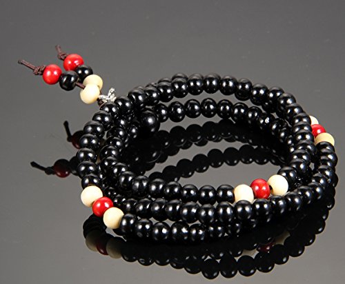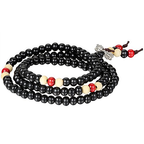 Flongo 6mm legno Bracciale collegamento polso regolabile tibetano buddista stile nero