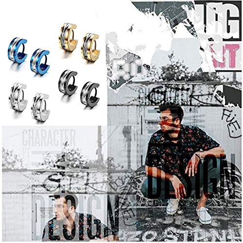 Flongo orecchini uomo in acciaio cerchio forma polacco stile vari colori 4 coppie