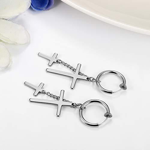 Flongo Set 2 Paia Orecchini Punk da Uomo Donna Ciondolo Croce Colore Argento Nero