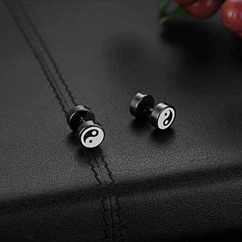 Flongo 3 Paia Orecchini da Uomo Donna 8mm Piccoli Orecchie Tappi Yin Yang Tai Chi Orecchini Hip Hop, Orecchini in Acciaio Inossidabile Regalo di Natale San Valentino