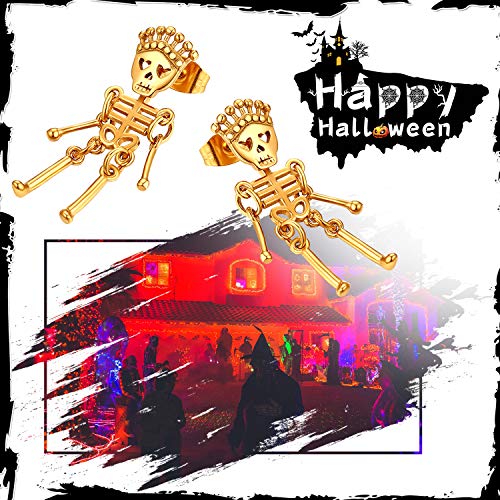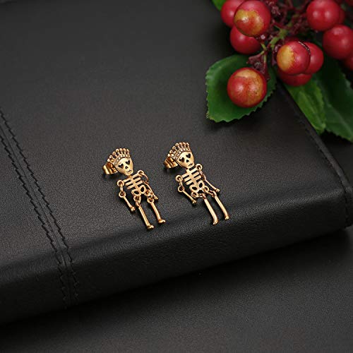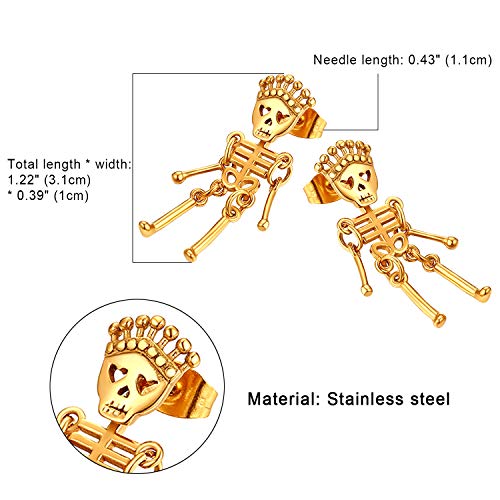 Flongo 1 Paio Orecchini Uomo Donna Punk Scheletro Teschio in Acciaio inossidabile Colore Nero