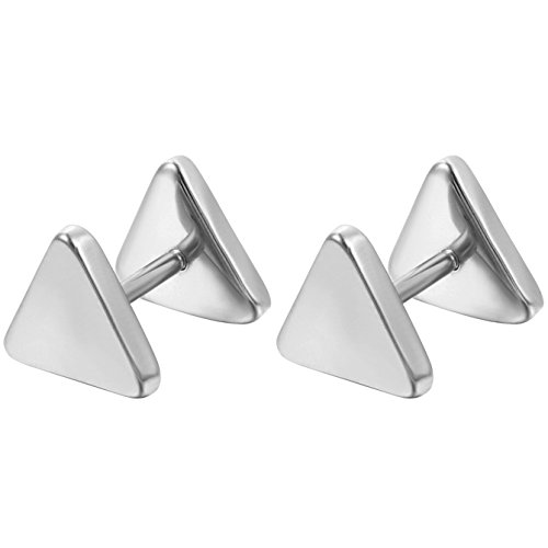 Flongo Orecchini viticci triangoli, acciaio inossidabile piccoli orecchini originale, borchie orecchini unisex uomo donna, Oro Argento Nero